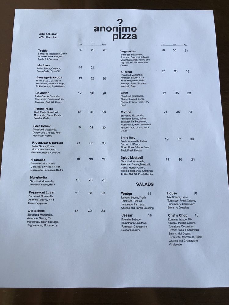 Welcome to Anonimo Pizza, where culinary creativity meets casual dining in the heart of Sacramento. Known for its diverse range of pizzas—ranging from the classic Detroit-style to gourmet choices like Pear Honey, this establishment promises a unique twist in every bite. Each pizza comes crafted with precision, showcasing the perfect sauce-to-cheese ratio on a well-cooked crust.
